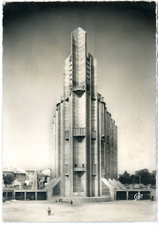 Cette très belle carte du chantier nous propose une vue de l'entrée de l'église, le côté ouest. Les architectes sont nommés, Guillaume Gillet et Monsieur Hébrard en architecte d'opération. René Sarger est nommé en tant qu' ingénieur. Par contre pas de citation de Monsieur Laffaille. Cette carte postale affiche Tito comme éditeur mais au dos est inscrit Berjaud et la petite phrase : véritable photographie au bromure. Elle est datée, au stylo-bille bleu de septembre 1958.