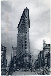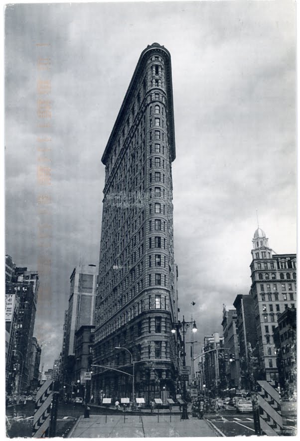 On hésite entre destruction future et construction en cours. Les points de vue finalement sont assez proches d'une édition de cartes postales banales mais tout tient dans l'état du bâtiment qui trouble cette sensation. L'éclairage aussi, très anglé et étrange comme une lumière d'hiver en fin de journée donne une transparence à l'image. J'aime les points des feux de signalisation et du feu stop de la voiture.
